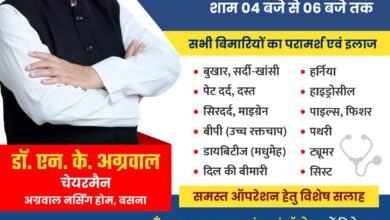 स्वस्थ समाज का संकल्प: अग्रवाल नर्सिंग होम बसना के वरिष्ठ विशेषज्ञों डॉ. एन. के. अग्रवाल द्वारा निःशुल्क परामर्श सेवा प्रारम्भ