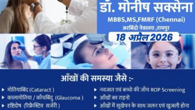 सरायपाली : प्रदेश के प्रख्यात नेत्र चिकित्सा डॉ मोनीष सक्सेना MBBS, MS, FMRF, अरविंदो नेत्रालय रायपुर एवं उनकी टीम अग्रवाल…