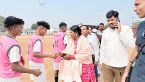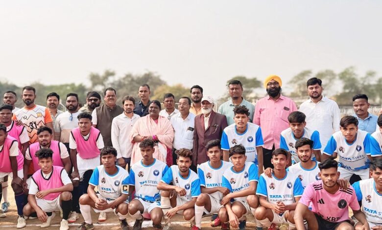 सरायपाली : क्षेत्रीय विधायक चातुरी नंद ने छत्तीसगढ़ चौहान सेना द्वारा आयोजित स्व बी एस भाटिया स्मृति अंतरराज्यीय फुटबॉल प्रतियोगिता का शुभारंभ किया।