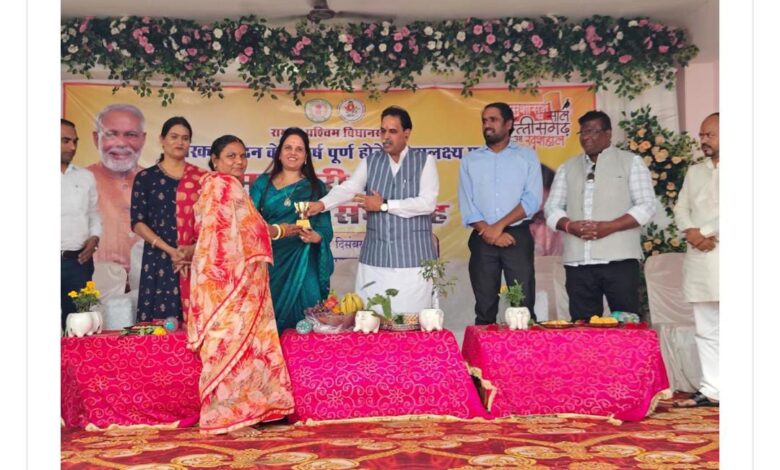 महतारी वंदन सम्मान समारोह में लाभान्वित महिलाओं का सम्मान