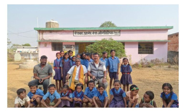 पद्मश्री जागेश्वर यादव जी का सरायपाली के एक छोटे से गांव के शासकीय प्राथमिक शाला जोगीडीपा का किया गया निरक्षण