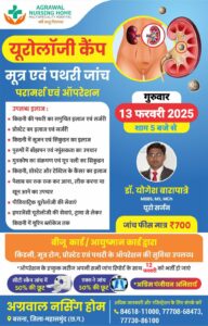 अग्रवाल नर्सिंग होम बसना यूरोलॉजी कैंप 13 फरवारी को
