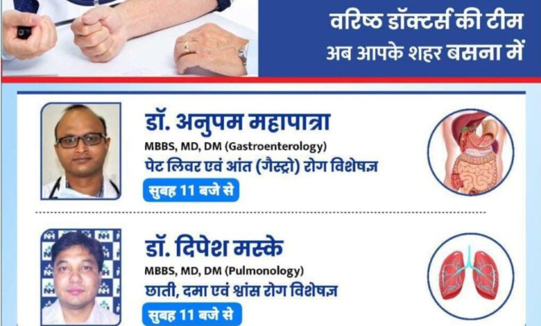 अग्रवाल नर्सिंग होम, बसना में 15 फरवारी को रायपुर के NHMMI के प्रख्यात सुपर स्पेशलिस्ट डॉक्टर्स (डॉ. दीपेश मस्के/डॉ. अनुपम महापात्रा) अपनी सेवाएँ देंगे