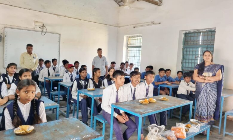 सरायपाली : विकासखंड शिक्षा अधिकारी प्रकाश चंद्र मांझी, सहायक विकासखंड शिक्षा अधिकारी डी एन दीवान एवं विकासखंड स्त्रोत समन्वयक (समग्र शिक्षा) सरायपाली सतीश स्वरूप पटेल के मार्गदर्शन में प्रधानमंत्री पोषण शक्ति योजना अंतर्गत स्वादिष्ट एवं पौष्टिक भोजन देने के लिए नेवता भोज का आयोजन किया जा रहा है। इसी तारतम्य में शासकीय आदर्श उच्चतर माध्यमिक विद्यालय सरायपाली की व्याख्याता कुसुम देवांगन के जन्म दिवस के उपलक्ष्य में बच्चों को स्वल्पाहार के रुप में बड़ा,समोसा,जलेबी,मिक्चर, केक,केला दिया गया।इस अवसर पर प्राचार्य, शिक्षक, शिक्षिका एवं बच्चे उपस्थित थे। इसी प्रकार चिवराकुटा में हीरालाल साहू परिवार द्वारा अपनी सुपुत्री के शुभविवाह के अवसर पर शासकीय प्राथमिक एवं उच्च प्राथमिक शाला के बच्चों को नेवता भोज में चावल,दाल,मिक्स सब्जी,टमाटर खट्टा,खीर, गुलाब जामुन दिया गया। शाला परिवार सुपुत्री के उज्जवल भविष्य की शुभकामनाओं के साथ साधुवाद ज्ञापित किया।