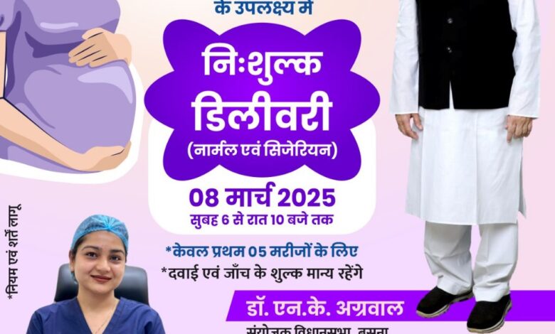 गर्भवती महिलाओं के लिए खुशखबरी विश्व महिला दिवस के उपलक्ष्य में निःशुल्क डिलीवरी अग्रवाल नर्सिंग होम बसना में