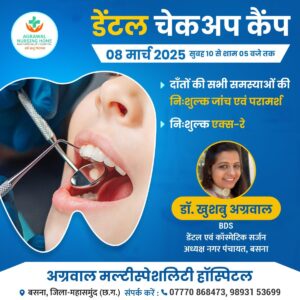 अग्रवाल नर्सिंग होम बसना में फ्री डेंटल चेकअप आज 08 मार्च को