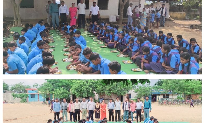 सरायपाली: शासकीय उच्चतर माध्यमिक विद्यालय चारभांठा, विकासखंड सरायपाली में पदस्थ व्याख्याता मोनिका साहू एवं व्याख्याता चैतराम भोई के द्वारा अपने जन्मदिन के शुभ अवसर पर मुख्यमंत्री पोषण शक्ति योजना अंतर्गत बच्चों को स्वादिष्ट एवं पौष्टिक भोजन देने की योजना चल रही है। जिसके अंतर्गत कक्षा 1ली से 12वीं तक अध्ययनरत 424 विद्यार्थियों को चावल, दाल एवं स्वादिष्ट सब्जी के साथ मिष्ठान वितरण किया गया।शाला परिवार के द्वारा उनको जन्म दिवस पर शुभकामनाएं दी गई।उक्त अवसर पर संकुल प्रभारी शौकी लाल भोई,प्रधान पाठक वीरेंद्र प्रधान,अश्विनी बुडेक, संकुल समन्वयक राजेश पटेल एवं पालक गण उपस्थित थे।
