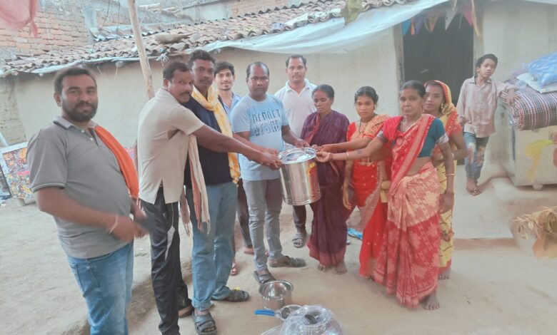 बसना : बसना ब्लॉक के ग्राम पंचायत रेमड़ा निवासी स्व. पुरंदर भाई की सुपुत्री कुमुदिनी भोई के विवाह कार्यक्रम में गाँव के नव युवकों द्वारा बर्तन भेंट कर बेटी को अपना आशीर्वाद प्रदान किये और ग्रामीणों ने कहा गांव के बेटी है, बेटी लक्ष्मी की रूप हैं, विवाह कार्यक्रम में किसी प्रकार की कोई कमी ना हो करके पूरे गांव के नाम युवकों द्वारा जिम्मेदारी उठाई है, जिससे आने वाले समय में गांव के कोई भी बेटी के विवाह में दिक्कतें आने नहीं देंगे, और हर संभव प्रयास करने का प्रण लिया।