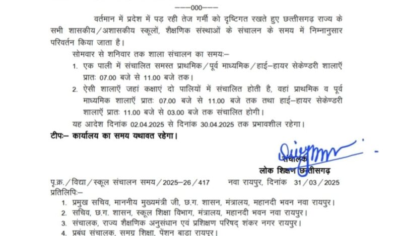 छत्तीसगढ़ शासन ने गर्मी की वजह से स्कूलों का समय बदला