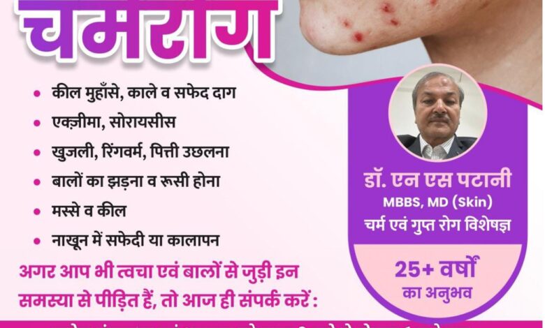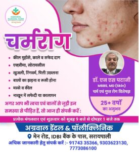 चर्मरोग विशेषज्ञ प्रत्येक मंगलवार एवं शुक्रवार को अग्रवाल डेंटल&पॉलीक्लिनिक सरायपाली में उपलब्ध रहेंगे
