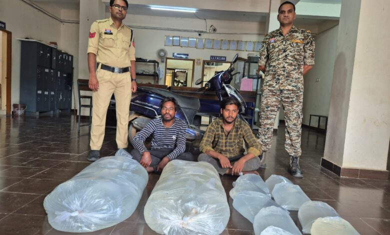 इसी तारतम्य मे थाना सिंघोडा क्षेत्र में दिनांक 03/06/2025 को जरिये मुखबीर से सूचना मिलने पर घटना स्थल मल्दामाल चौक मे जाकर नाकाबंदी किया गया कुछ समय बाद ग्राम परसापाली से समदरहा की ओर दो व्यक्ति एक नीला कलर की TVS Jupitor स्कुटी क्रमांक CG 06 HD 2672 से आ रहे थे जिसे रोककर स्कूटी मे लदे बोरियो के संबंध मे पूछताछ करने पर गोलमोल जबाब देने लगे। पुलिस टीम के द्वारा नाम पता पूछने पर अपना नाम (01) ब्रिजेश जोल्हे पिता स्व घांसीराम जोल्हे उम्र 19 साल साकिन पलसापाली थाना बलौदा महासमुंद एवं (02) शिबो बरिहा पिता कुंजबिहारी बरिहा उम्र 29 साल साकिन छिबर्रा थाना बलौदा, महासमुंद का निवासी होना बताए तथा बोरियो मे 40 नग प्लास्टिक झिल्ली मे पैकिंग कर कुल 200 लीटर अवैध महुआ शराब परिवहन करना बताये जिससे बोरियो की तलाशी लिया गया तो बोरियो के अंदर 05-05 लीटर क्षमता वाली 40 नग प्लास्टिक झिल्ली मे भरी हुई कुल 200 लीटर हाथ भठ्ठी निर्मित देशी महुआ शराब कीमती 40000 रूपये होना पाया गया। व्यक्ति को शराब रखने के संबंध में नोटिस दिया गया जो किसी प्रकार को वैध दस्तावेज नही होना बताने पर व्यक्ति के कब्जे से घटना मे प्रयुक्त एक TVS Jupitor स्कुटी क्रमांक CG 06 HD 2672 कीमती 60000 रूपये एवं 200 लीटर महुआ शराब कीमती 40000 रूपये जुमला कीमती 100000 रूपये को जप्त थाना सिंघोड़ा में अपराध धारा 34(2) आबकारी एक्ट के तहत प्रकरण दर्ज किया जाकर वैधानिक कार्यवाही की गई है।