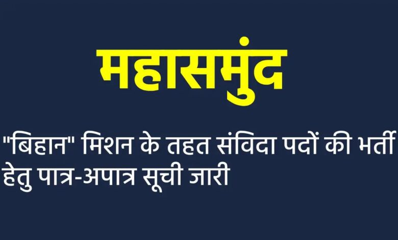 “बिहान” मिशन के तहत संविदा पदों की भर्ती हेतु पात्र-अपात्र सूची जारी