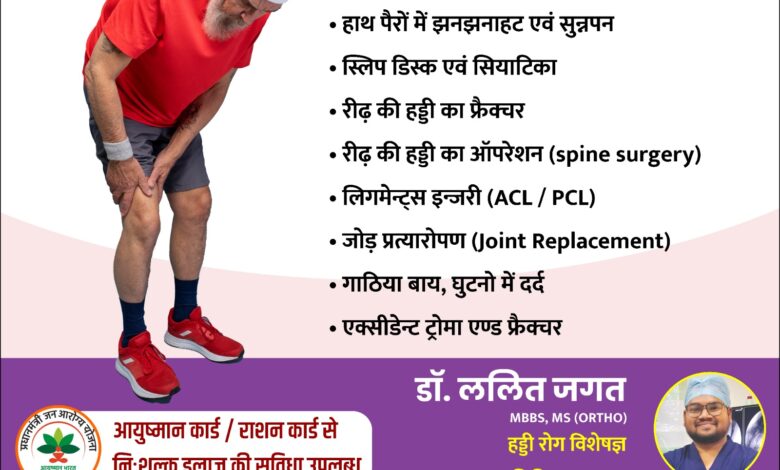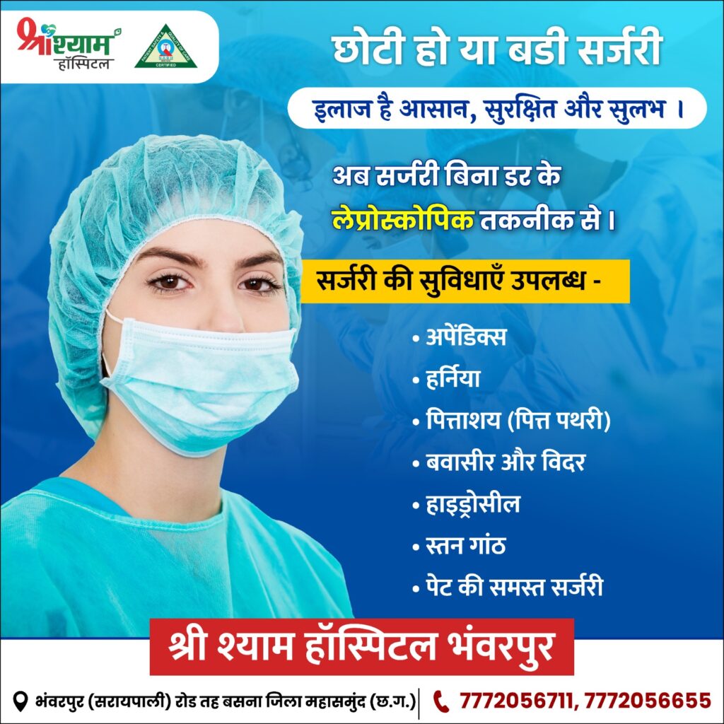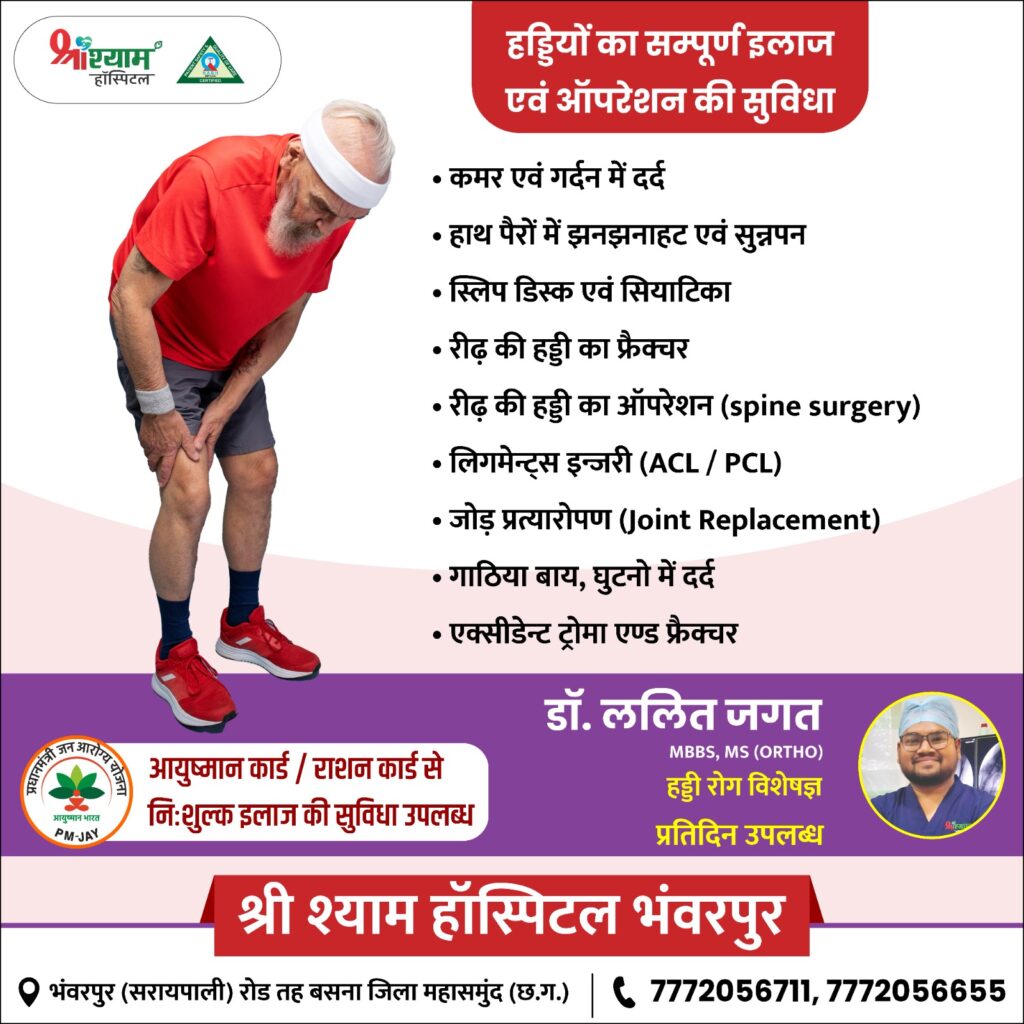 सरायपाली/भॅवरपुर : अब हड्डियों के इलाज के लिए बड़े शहर जाने की आवश्यकता नहीं क्योंकि श्री श्याम हॉस्पिटल प्रतिदिन में प्रतिदिन डॉ.ललित जगत MBBS, MS (ORTHO) हड्डी रोग विशेषज्ञ उपलब्ध रहेंगे। जहाँ पर आपको हड्डी से जुड़ी सभी प्रकार की समस्या का इलाज एक ही छत के नीचे मिलेगा।जैसे आधुनिक तकनीक से सर्जरी, तेज रिकवरी और बेहतर मूवमेंट, दर्द मुक्ति चलना-दौड़ना फिर से संभव है।