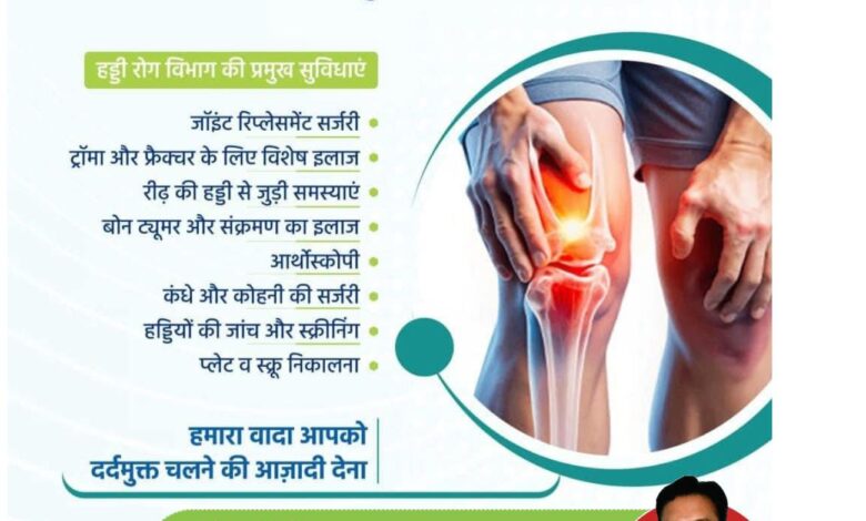 महासमुंद/सरायपाली : जिले का एकमात्र हॉस्पिटल अग्रवाल नर्सिंग होम बसना में विशाखापट्टनम के प्रख्यात हॉस्पिटल्स में 10 वर्षों से अधिक अनुभव तथा 5000 से अधिक जोड़ प्रत्यारोपण एवं स्पाइन सर्जरी का अनुभव रखने वाले डॉ.संदीप सराफ हड्डी रोग विभाग की प्रमुख सुविधाएं जॉइंट रिप्लेसमेंट सर्जरी,ट्रॉमा और फ्रैक्चर के लिए विशेष इलाज,रीढ़ की हड्डी से जुड़ी समस्याएं,बोन ट्यूमर और संक्रमण का, इलाज,आर्थोस्कोपी,कंधे और कोहनी की सर्जरी,हड्डियों की जांच और स्क्रीनिंग,प्लेट व स्क्रू निकालना,किसी भी प्रकार की जटिलताओं की देख-रेख के लिए बहुचिकित्सकीय टीम आधुनिक इंफ्रास्ट्रक्चर और मॉडुलर ऑपरेशन थिएटरऔर आयुष्मान/राशन कार्ड/हैल्थ इंश्योरेंस की सुविधा भी अग्रवाल नर्सिंग होम बसना में है। दिए गए लक्षणों में अगर किसी को भी किसी भी प्रकार की कोई समस्या है तो डॉ संदीप सराफ अग्रवाल से एक बार परामर्श जरूर लेवे। अधिक जानकारी के लिए नीचे दिए गए नंबर पर संपर्क कर जानकारी ले सकते हैं।