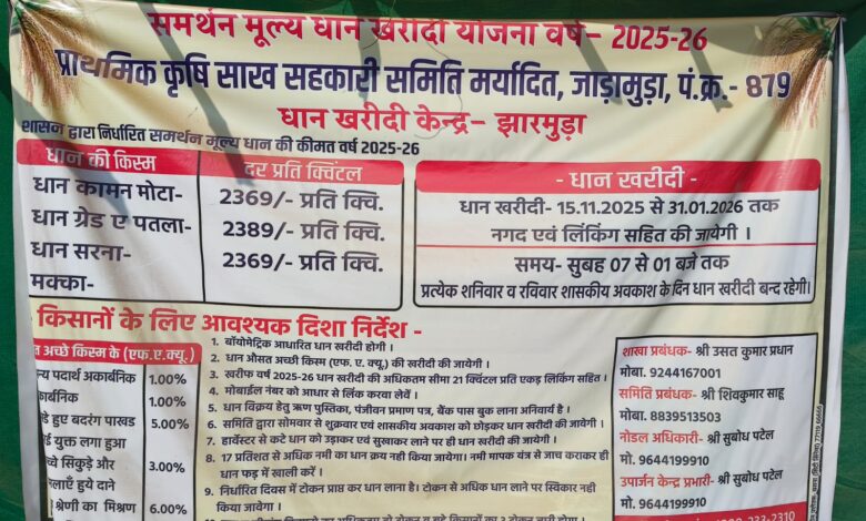 झारमुडा धान उपार्जन केंद्र में निर्धारित मात्रा से अधिक धान लेने का मामला आया सामने , समिति प्रबंधक शिवकुमार साहू किसानों के साथ कर रहे हैं धोखाधड़ी