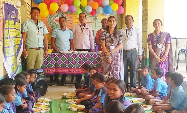प्राथमिक एवं उच्च प्राथमिक विद्यालय में नमिता पटेल मेम ने बच्चों को आंशिक नेवता भोज दिया
