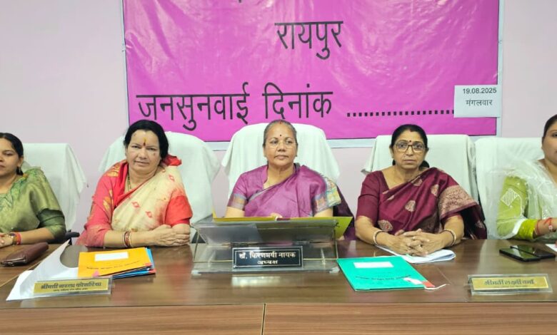 इसी कड़ी में छत्तीसगढ़ राज्य महिला आयोग की अध्यक्ष डॉ. किरणमयी नायक,सदस्य गण श्रीमती सरला कोसरिया,श्रीमती ओजस्वी मंडावी एवं सुश्री दीपिका सोरी की न्यायपीठ द्वारा राज्य की महिलाओं को त्वरित न्याय और राहत देने के लिए छत्तीसगढ़ के पांचों संभाग में लगातार पांच दिनों तक महा जन-सुनवाई की जावेगी।