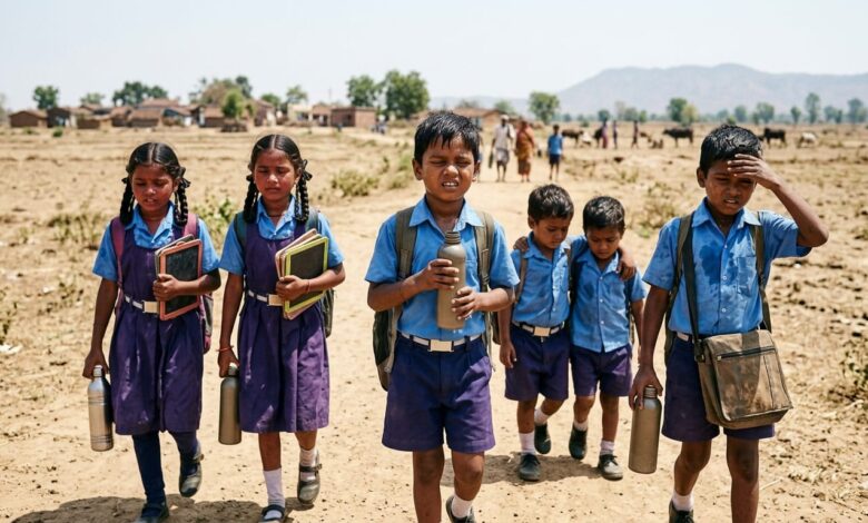 धूप से बचाव: बच्चे दोपहर की भीषण तपिश शुरू होने से पहले सुरक्षित अपने घर पहुँच जाएंगे।