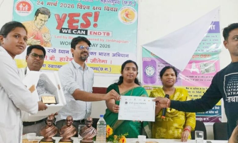 सरायपाली : स्वर्गीय मोहनलाल चौधरी सामुदायिक स्वास्थ्य केंद्र सरायपाली में 24 मार्च 2026 को विश्व क्षय रोग दिवस पर सरायपाली के अनुविभागीय अधिकारी राजस्व IAS अनुपमा आनन्द के द्वारा टीबी मुक्त हो चुके 48 ग्राम पंचायत सरपंच को सम्मानित किया गया जिसमें से 20 को कांस्य व 28 को सिल्वर का प्रमाण पत्र के साथ मोमेंटो प्रदान किया गया इस कार्यक्रम में खंड चिकित्सा अधिकारी डॉक्टर कुणाल नायक द्वारा बताया गया कि टीबी बीमारी माइकोबैक्टेरियम ट्यूबरक्लोसिस नामक जीवाणु से फैलता है जिसका खोज 24 मार्च 1882 को जर्मनी के डॉ रॉबर्ट कोच के द्वारा किया गया था इसीलिए इस दिवस को क्षय रोग दिवस के रूप मे मनाते हैं ।टीबी का इलाज डॉटस पद्धति से किया जाता है जिसमें रोगी 6 माह में पूर्ण स्वस्थ हो जाता है इस वर्ष 2026 का थीम ” हम तपेदिक को समाप्त कर सकते हैं प्राथमिक स्वास्थ्य देखभाल ,नवाचार और प्रतिबद्ध समुदायों द्वारा संचालित” है। टीबी एक संक्रामक बीमारी है जिसका प्रमुख लक्षण शाम को बुखार आना , पसीना आकार बुखार उतर जाना, भूख ना लगना, वजन में कमी होना, दो सप्ताह से अधिक तक का बलगम युक्त खांसी इत्यादि प्रमुख है यह बीमारी संक्रमित व्यक्ति के संपर्क में आने से फैलता है आगे खंड विस्तार प्रशिक्षण अधिकारी टी आर धृतलहरे ने बताया की भारत सरकार के द्वारा who के अनुसार 2030 तक टीबी उन्मूलन का लक्ष्य रखा गया है टीबी रोग को क्षय रोग व तपेदिक के नाम से भी जाना जाता है जिसका शाब्दिक अर्थ शरीर का क्षरण होना होता है। टीबी से ग्रसित व्यक्ति के खांसने, छिंकने व जगह जगह थूकने से यह एक दूसरे में फैलता है । बीपीएम शीतल सिंह ने बताया कि सरायपाली मे 107 पंचायत में 48 पंचायत निर्धारित मापदंड अनुसार टीबी मुक्त ग्राम पंचायत हुए है। जिसके लिये फील्ड, व ब्लॉक स्तर पर सभी कर्मचारीयों का योगदान प्रमुख रूप से रहा है। आगे भी सभी टीम वर्क की तरह कार्य करते हुए बचे हुए 59 ग्राम पंचायत को टी बी मुक्त करने के लिये प्रयासरत रहेंगे। टी बी मुक्त करने के लिये यह जरूरी है की व्यक्ति स्वयं सतर्क रहे और लक्षण दिखने पर तत्काल मितानिन व नजदीक के स्वास्थ्य केंद्र से संपर्क करें।