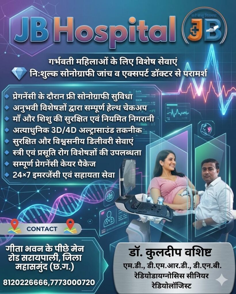 JB हॉस्पिटल सरायपाली में डॉ. कुलदीप वशिष्ठ के नेतृत्व में अत्याधुनिक ‘3D/4D अल्ट्रासाउंड’ की सुविधा उपलब्ध