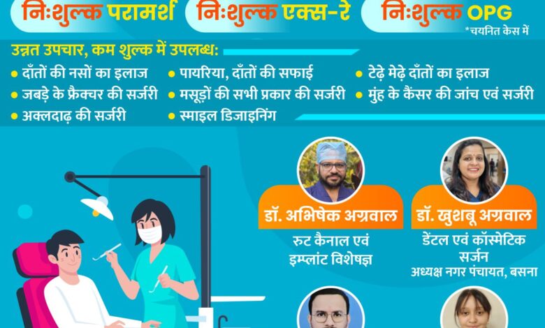 शिविर के दौरान मरीजों को विशेषज्ञों द्वारा निःशुल्क परामर्श दिया जाएगा। इसके साथ ही डिजिटल एक्स-रे और OPG (दाँतों का पूर्ण स्कैन) की सुविधा भी पूरी तरह निःशुल्क रहेगी।