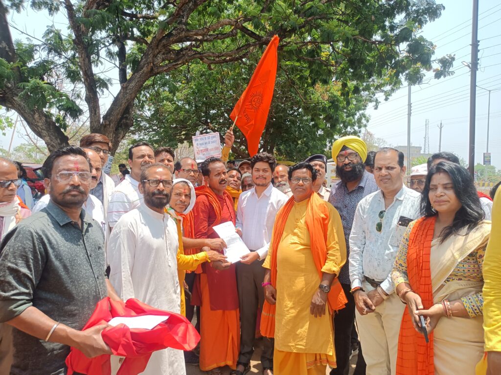 महासमुंद/सरायपाली : गौ सम्मान आह्वान अभियान के अंतर्गत आज भारत के संभवतः 5400 तहसील केंद्रों में आज मोहनी एकादशी के दिन भारतवर्ष के गौ प्रेमी संतो , गौ सेवकों एवं गौ रक्षकों के संयुक्त आह्वान पर ” गौ सम्मान आह्वान अभियान आहूत की गई । जिसमें कार्यक्रम के प्रधान संरक्षक गौ माता सुरभि एवं अध्यक्ष नंदी महाराज जी थे । जिसमें भारतवर्ष के सभी तहसील केंद्रों को 11000 हस्ताक्षर कराने का लक्ष्य निर्धारित किया गया था और 27 अप्रैल प्रातः 10:00 बजे गौ माता के नेतृत्व में एक निश्चित स्थान पर एकत्रीकरण के पश्चात तहसील केंद्रों तक हरी नाम संकीर्तन करते हुए शांतिपूर्ण पदयात्रा के पश्चात तहसीलदार महोदयों के माध्यम से महामहिम राष्ट्रपति महोदया श्रीमति द्रोपदी मुर्मू , प्रधानमंत्री श्री नरेंद्र दामोदर दास मोदी सभी राज्यों के माननीय राज्यपाल एवं मुख्यमंत्री महोदय के नाम ज्ञापन सौंपा गया इसी तारतम्य में आज हमारे तहसील केंद्र सराईपाली में भी गौ सम्मान आह्वान अभियान का कार्यक्रम आहूत किया गया जिसमें हिन्दु संगठनों से जुड़े प्रमुख नेतृत्वकर्ताओं ने कठिन परिश्रम करते हुए हस्ताक्षर अभियान और सुदूर ग्रामीण क्षेत्रों एवं नगर के प्रत्येक क्षेत्रों में उनके कार्यकर्ताओं को धरातल पर उतार कर वृहद जनसंपर्क कर हस्ताक्षर अभियान एवं इस गौ सम्मान आह्वान अभियान के विषय में जन जागृति किया । इसके साथ ही 27 अप्रैल को प्रातः पदमपुर रोड स्थिति दुर्गा मंदिर में समस्त हिन्दु संगठनों सामाजिक संगठनों से जुड़े गौ भक्तों का वृहद एकत्रीकरण किया गया और प्रातः10:30 को गौ माता के नेतृत्व में सभी लोगों के द्वारा हरी नाम संकीर्तन करते हुए शांतिपूर्ण रूप से पदयात्रा करते हुए तहसीलदार के कार्यलय तक हस्ताक्षर किए गए दस्तावेजों और ज्ञापन सौपा गया । उसके पश्चात संतोषी सेवा समिति सराईपाली की ओर से संतोषी मंदिर में भोजन प्रसादी की व्यवस्था की गई थी जिसमें सभी लोगो ने प्रसाद ग्रहण किया और फिर कार्यक्रम का समापन किया गया ।