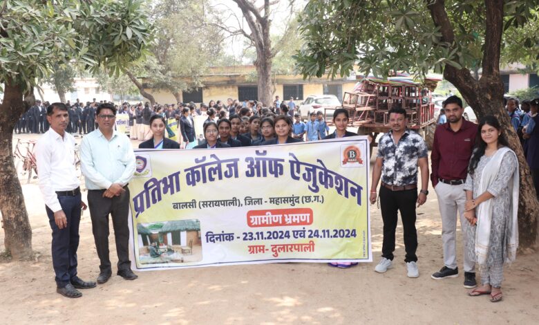 सरायपाली: प्रतिभा कॉलेज ऑफ़ एजुकेशन के बी एड एवं डीएलएड के छात्र अध्यापकों को 23 एवं 24 नवंबर को दो दिवसीय ग्रामीण हेतु ग्राम दुलारपाली ले जाया गया। जिसका उद्देश्य छात्र छात्राओं को सर्वेक्षण कार्य के साथ- साथ ग्रामीणों को नुक्कड नाटक के माध्यम से ग्रामीणों को जागरूक करना होता है जहां प्राचार्य श्री आर के चौधरी द्वारा प्रथम दिवस छात्राध्यापकों के समक्ष यातायात नियम के बारे में बताते हुए ग्रामीण वासियों के समक्ष वहां के विद्यार्थियों को जागरूक करने के लिए ग्राम वासियों को यातायात सुरक्षा की जानकारी दी गई।