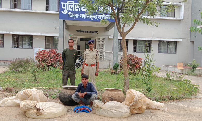 अवैध महुआ शराब पर महासमुन्द पुलिस की कार्यवाही।