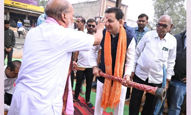 महासमुंद/बसना: विधायक डॉ.सम्पत अग्रवाल ने बस स्टैंड में हनुमान मंदिर निर्माण के लिए विधि-विधान से पूजा अर्चना कर भूमिपूजन किया। विद्वान आचार्यों द्वारा वैदिक मंत्रोच्चार के बीच भूमि पूजन कार्य संपन्न कराया गया।इस दौरान विधायक डॉ.सम्पत अग्रवाल ने कहा कि मंदिर का निर्माण कराना पुनीत कार्य है। इसकी जितनी प्रशंसा की जाय कम है। उन्होंने कहा कि मंदिर निर्माण में मेरे लायक जो भी सेवा होगी वह प्राथमिकता पर की जाएगी।
