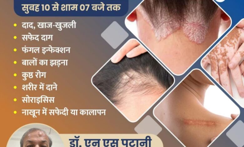 जिसमें 25 से अधिक वर्षों का अनुभव रखने वाले चर्म एवं गुप्त रोग विशेषज्ञ वी एस हॉस्पिटल, अहमदाबाद, गुजरात के डॉ.एन एस पटानी MBBS, MD (Skin) उपलब्ध रहेंगे, उनके द्वारा उपलब्ध उपचार:-दाद, खाज-खुजली,सफेद दाग,फंगल इन्फेक्शन,बालों का झड़ना,कुष्ठ रोग,शरीर में दाने,सोराइसिस,नाखून में सफेदी या कालापन जैसे बीमारियों का इलाज किया जाता है जो कोई भी इन समस्याओं से जूझ रहे है वो एक बार इस शिविर में जांच जरूर कराएं रजिस्ट्रेशन एवं पंजीयन के लिए नीचे दिए गए नंबर पर संपर्क करें।अग्रवाल नर्सिंग होम मल्टीस्पेशलिटी हॉस्पिटल बसना, जिला-महासमुंद (छ.ग.)