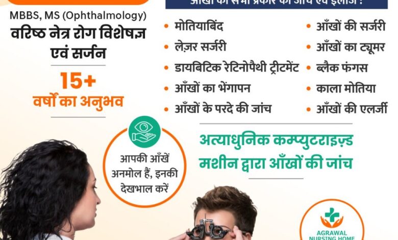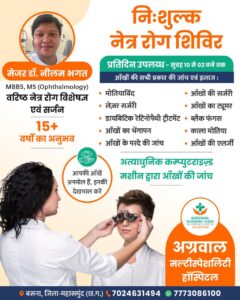 निशुल्क नेत्र रोग शिविर प्रतिदिन अग्रवाल नर्सिंग होम बसना में